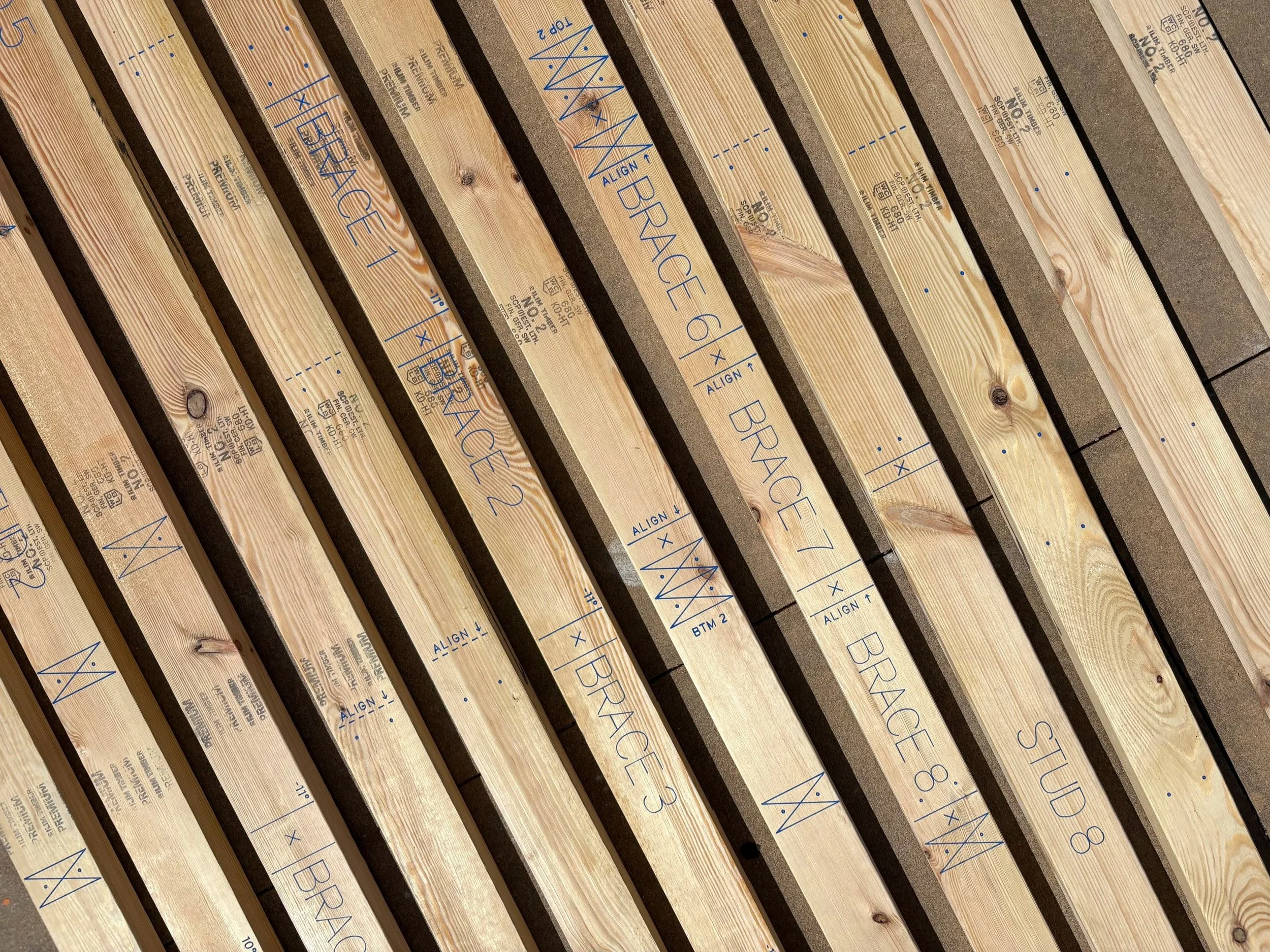 As the second iteration in a three-part series, the workshop explored participatory construction by engaging students as collaborators in the construction process. Using a custom marking robot, Scribe 2.0, fabrication and assembly information for the installation was directly embedded onto timber members. Annotations included cut angles, drill points, alignments, and unique part numbers. Each piece functioned as both a drawing and an assembly guide, reducing the need for complex construction documents, minimizing errors, and enabling people of all skill levels to participate in the building process. In this iteration, students used an app to view the digital model as they assembled the installation.